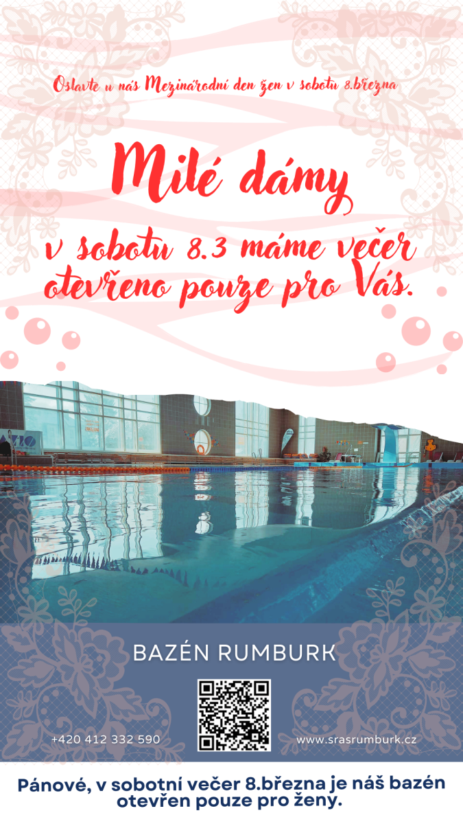 MIlé dámy, oslavte MDŽ vv poklidu aktivně v našem bazénu.V sobotu 8.3 večer (od 17.00) bude náš bazén rezervován pouze pro Vás.