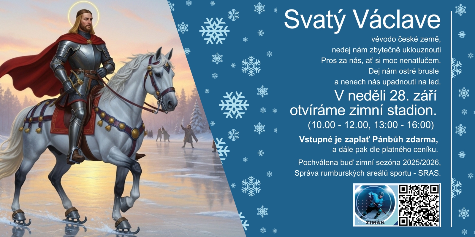 V neděli tradičně na sv.Václava 28. září otevíráme zimní stadion v Rumburku pro veřejnost. Nedělní vstupné je zdarma, dále již dle našeho ceníku. Ceny jsme nechaly stejné.