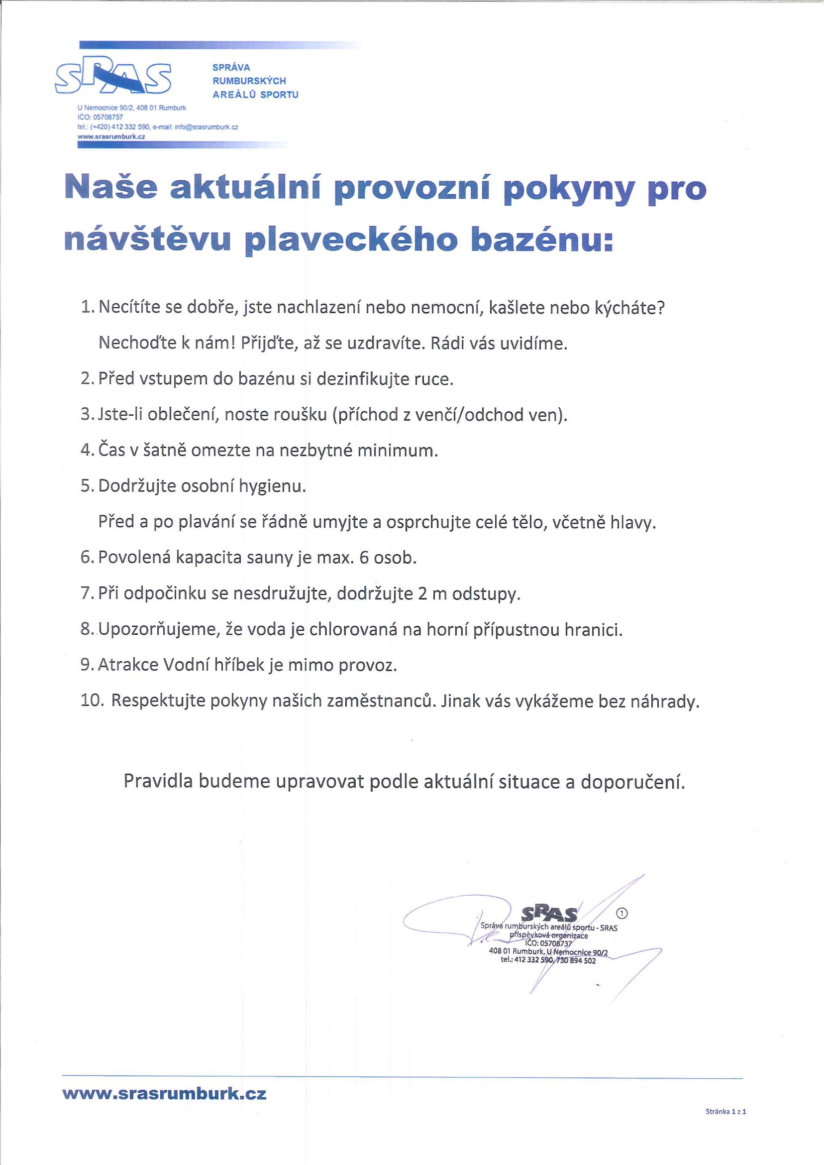 Pokyny budeme upravovat dle aktuálního stavu a situace.